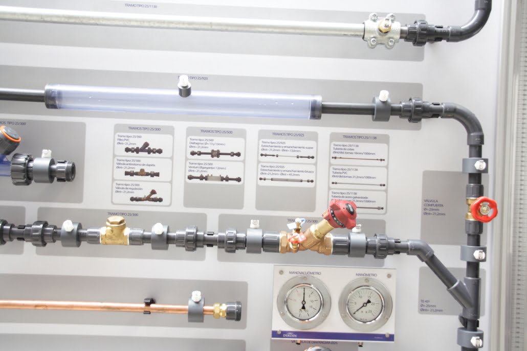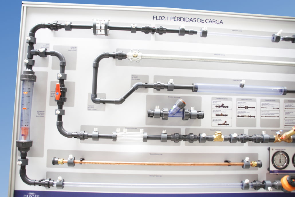 The FL02.1 equipment has been designed for the study of both friction losses in pipes, and the losses of characteristic elements offacilities such as; fittings,